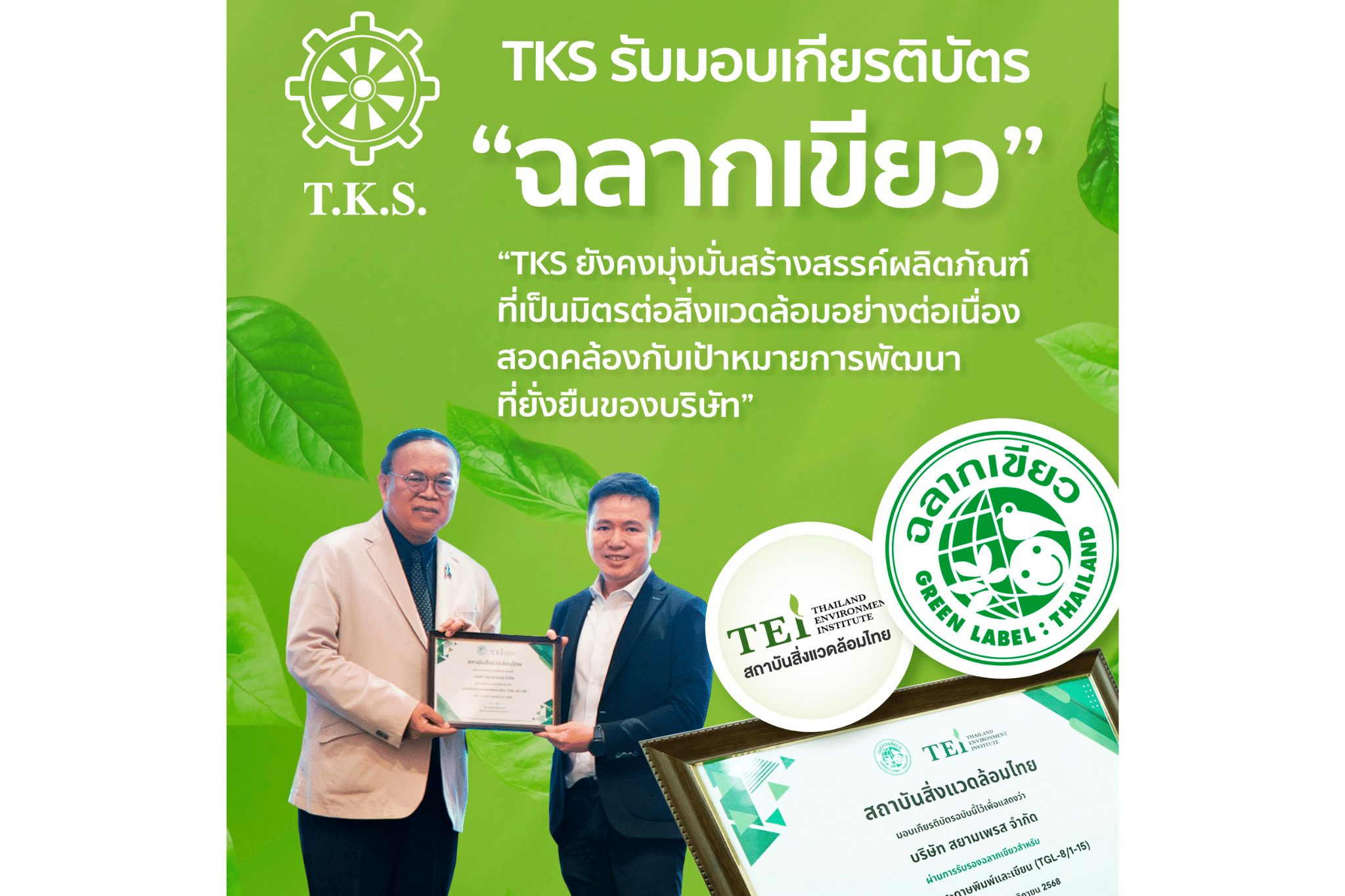 การรับมอบเกียรติบัตรฉลากเขียวในครั้งนี้ ถือเป็นการตอกย้ำความเป็นผู้นำด้านความยั่งยืนของ TKS และเป็นหมุดหมายสำคัญที่สะท้อนถึงวิสัยทัศน์ในการดำเนินธุรกิจควบคู่ไปกับความรับผิดชอบต่อสิ่งแวดล้อม