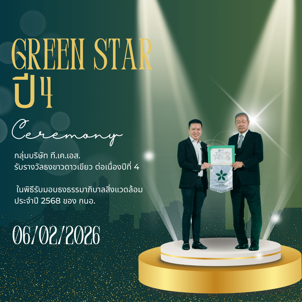 เมื่อวันที่ 6/2/69 กลุ่มบริษัท ที.เค.เอส. เข้ารับมอบธงธรรมาภิบาลสิ่งแวดล้อม ประจำปี 2568 จากการนิคมอุตสาหกรรมแห่งประเทศไทย (กนอ.)